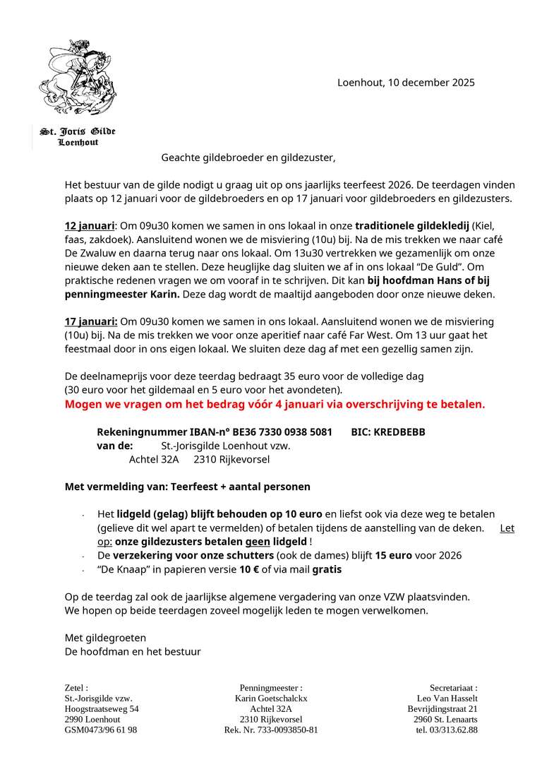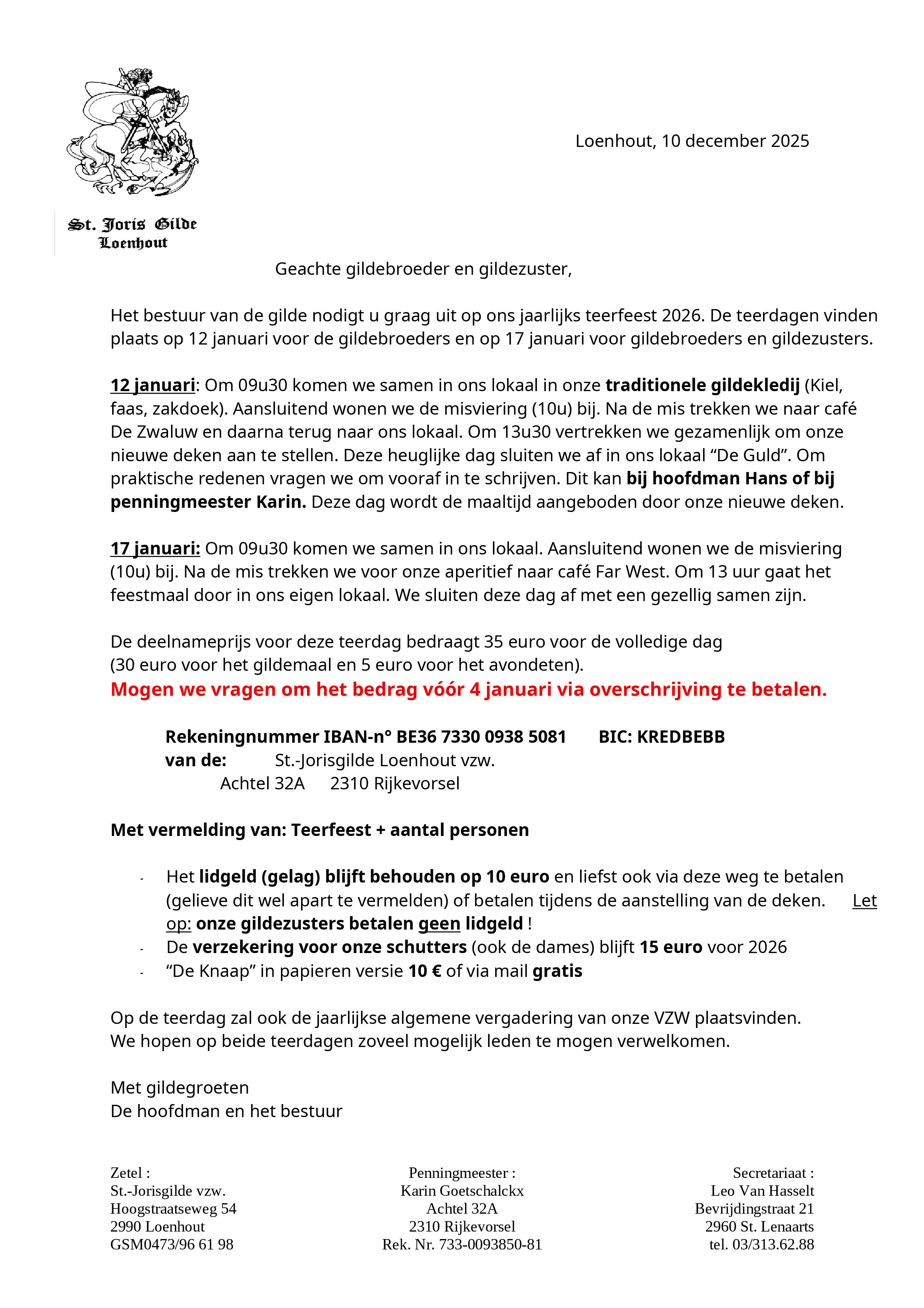Binnenkort beginnen we met onze gilde een nieuw werkjaar. Dit starten we traditioneel met ons jaarlijks teerfeest.